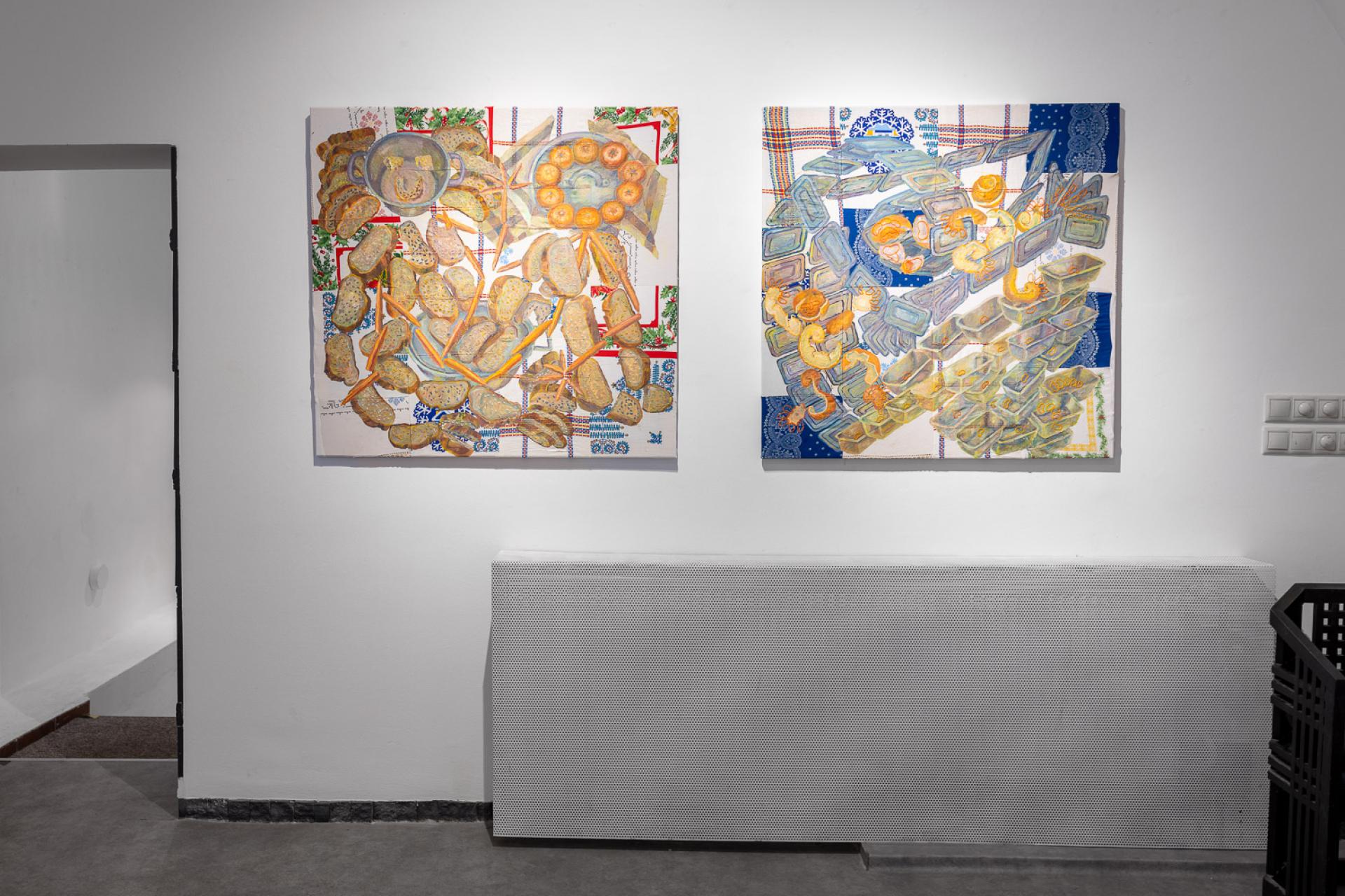 Textilné koláže z domácich textílií tvoria pozadie pre jej maľby a výšivky. Dohromady tematizujú život v domácnosti - látky majú známe vzory používané každý deň, ale i vo sviatky, sú poznačené používaním a stopami po deťoch. Maľby s drobnými vyšívanými detailmi v popredí pracujú so stereotypnosťou opakujúcich sa domácich prác.