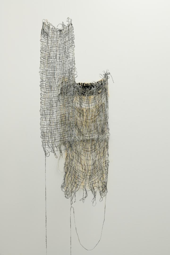 Výstava s názvom Povol(n)iť sa skladá z dvoch častí. Jedným je dielo, ktoré vzniklo v roku 2023. Druhé sa deje aktuálne v priebehu posledných mesiacov na prelome rokov 2025/26. Je neustále v procese. Obidve vedú vzájomný dialóg, aj keď to na prvý pohľad nemusí byť úplne zrejmé. Dôležitou súčasťou sú aj textové záznamy, denníky, skicáre, ktoré autorka vytvárala počas obdobia posledných 3 rokov. Zápisky ukotvujú prvé dielo v hlboko osobnej skúsenosti straty, ktorá však nemá podobu náhleho konca, ale skôr postupného miznutia. Postava starej mamy tu vystupuje ako tiché centrum, územie pokoja, starostlivosti a nehodnotiacej prítomnosti. Vytvára priestor, ktorý nie je viazaný len na konkrétne miesto, ale na vzťah. Ten pretrváva aj v momente, keď sa pamäť pod náporom choroby rozpadá, identita sa vytráca. Textil v tomto kontexte nadobúda charakter medzigeneračného dedičstva. Nie je len technikou či remeslom. Stáva sa formou pamäti, ktorá sa odovzdáva prostredníctvom tela, rúk a dotyku. Telesné vedomie uchováva v sebe skúsenosť aj keď myseľ zlyháva. Druhá časť prezentovaných prác túto skúsenosť nerozvíja naratívne. Presúva ju do roviny procesu. Autorka tu reflektuje vlastný vzťah k textilu ako k médiu vyžadujúcemu si čas, pozornosť a schopnosť spomaliť. V kontexte predchádzajúcej skúsenosti sa spomalenie neukazuje len ako pracovná podmienka, ale ako etická nevyhnutnosť. Spôsob, akým je možné zotrvať pri veciach, ktoré sa nedajú urýchliť ani uzavrieť. Do popredia sa dostáva i strach. Strach z rozhodnutí, z nevhodne použitého materiálu, z chýb, z nedostatočnosti. Stáva sa silnou stopou prameniacou z predchádzajúcich skúseností. Objavuje sa ako tieň v osobných zápiskoch. Vnútorný hlas, ktorý na jednej strane sprevádza samotný proces tvorby, no zároveň ho aj brzdí. Nechce ho fixovať, snaží sa ho opustiť a transformovať. Textilná práca sa tak môže stať miestom, kde sa autorka pokúša vnútorný konflikt postupne rozvoľňovať. Povoliť.