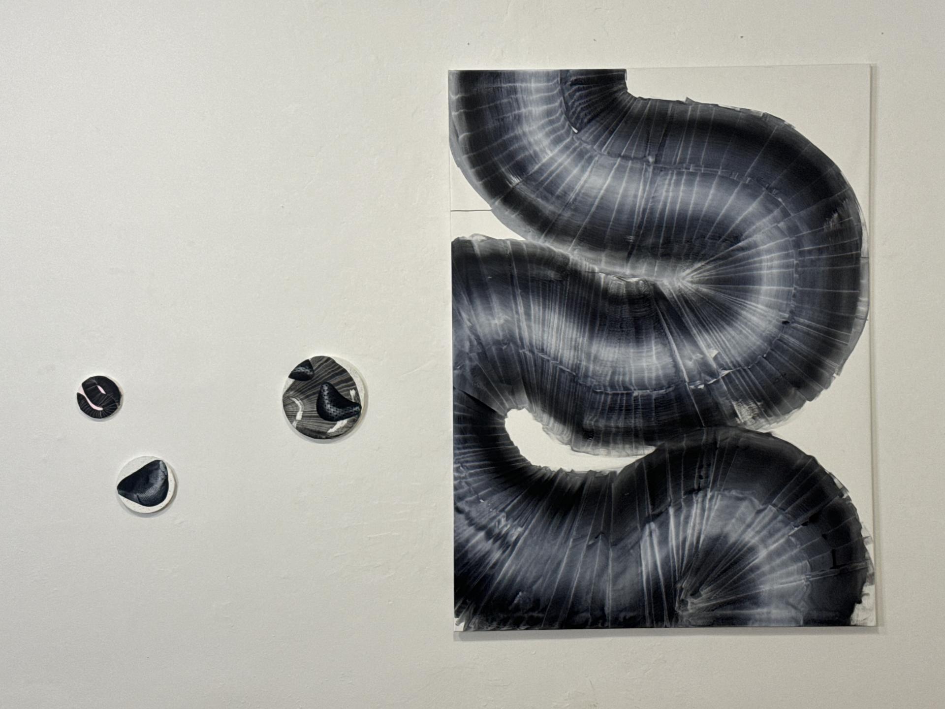 Koncepčná línia výstavných diel i autorskej inštalácie pozostáva z prehĺbenia a nadväznosti na autorkine predošlé tematické zacielenie. Lucia sa vo svojej umeleckej tvorbe dlhodobo sústreďuje na skúmanie telesnosti a fluidity človeka ako jedinca, či jeho duševných a fyzických premien evokujúcich tekutosť. Organicky prúdiaci jav sa dôsledkom identických vlastností stáva samotným človekom. Aj on plynie, alternuje, obmieňa svoju skutočnosť.